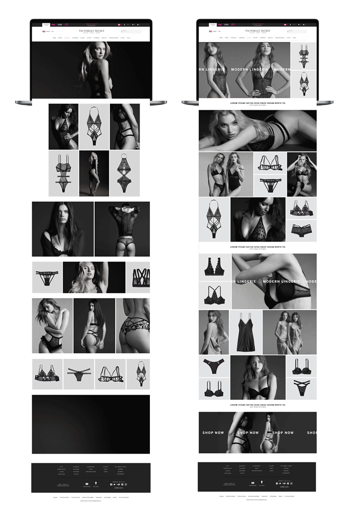 Worked on this Fall Campaign from concept to execution. Ideating closely with the cross functional partners to make sure we had a 360 holistic experience. It was a bold move for VS, choosing to showcase the main visuals in black and white imagery.